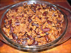 2. Add the minced meat, chilli red beans, salt and water and cook it until the meat is done.